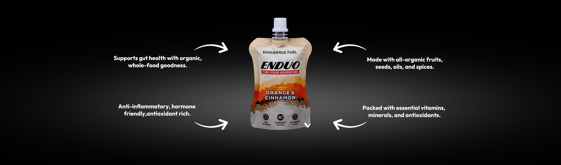 ENDUO is a smooth nutritious paste. Easy enough to squeeze out on the run but thick enough not to leak out.